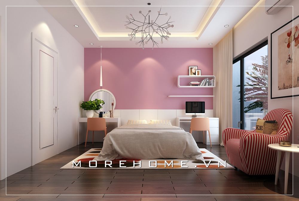Việc lựa chọn và bố trí chiếc giường ngủ phù hợp sẽ mang đến cho không gian riêng tư của con một không gian nghỉ ngơi thoải mái, dễ chịu nhất, gợi sự thích thú cho con thêm yêu thích căn phòng ngủ mình hơn. Liên hệ Morehome để được tư vấn cho bạn.
