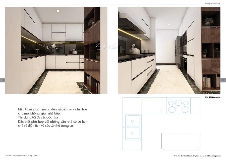 Mẫu thiết kế phòng bếp với hệ tủ bếp chữ bằng gỗ công nghiệp cho chung cư, nhà phố, biệt thự hiện đại