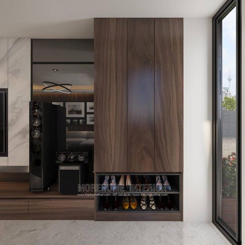 Kệ trang trí để giày, đồ ngay từ cửa chính là một trong những giải pháp khá thông minh đảm bảo khá nhiều công năng ngay từ khi bước vào ngôi nhà.