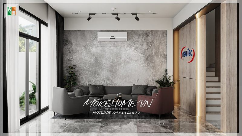Mẫu thiết kế văn phòng showroom hiện đại, nhỏ nhắn được cách điệu bằng bức tường gạch tạo điểm nhấn nổi bật cho căn phòng